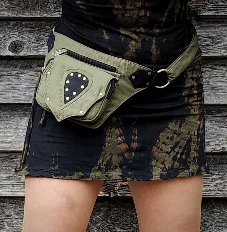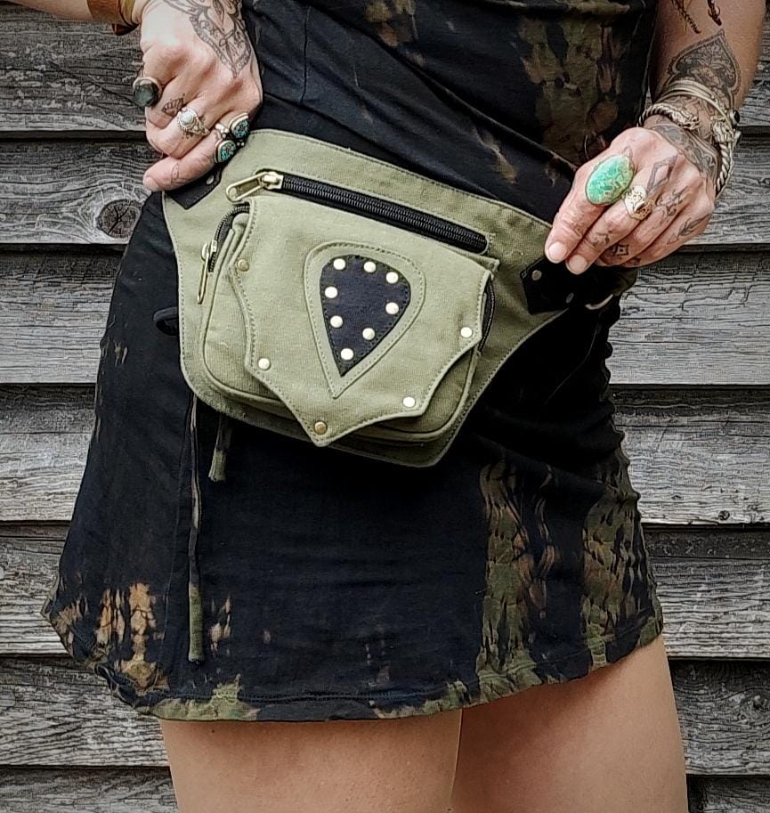 Belt bag with several pockets, unisex model in cotton fabric, pointed cut in the fairy tribal spirit, one size adjustable. (see dimensions below).