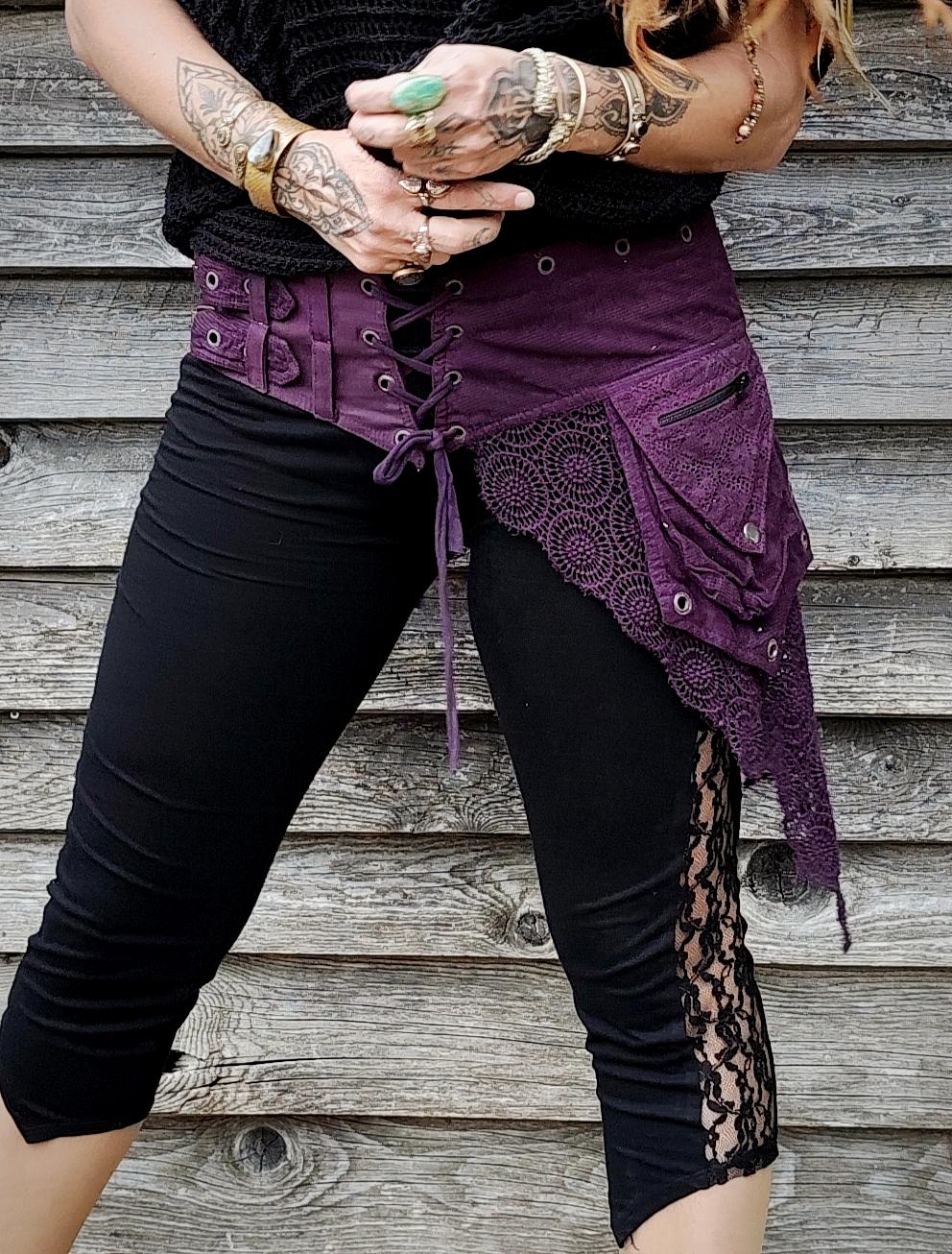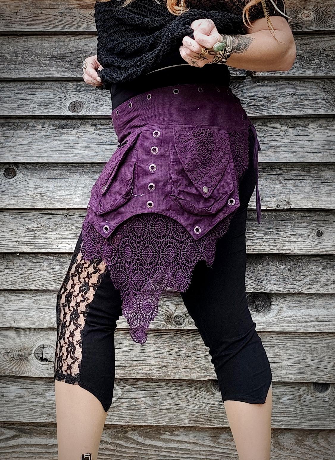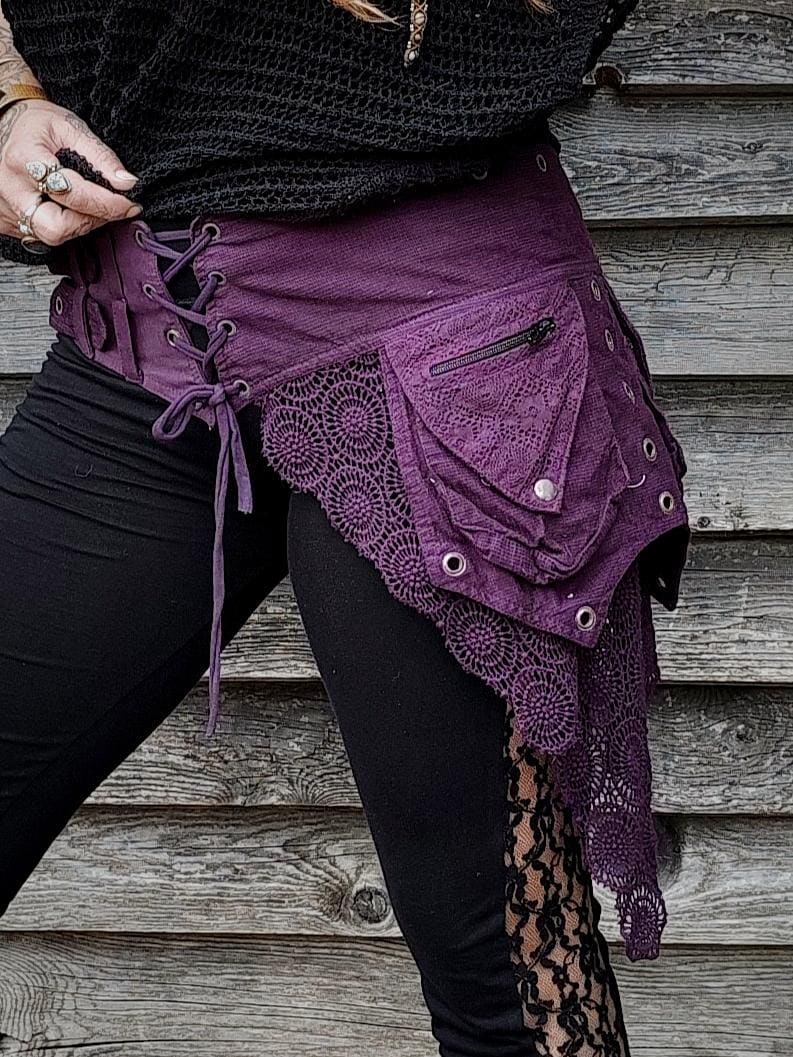 Gypsy bag belt in cotton fabric and lace tip to give the effect of an overskirt.