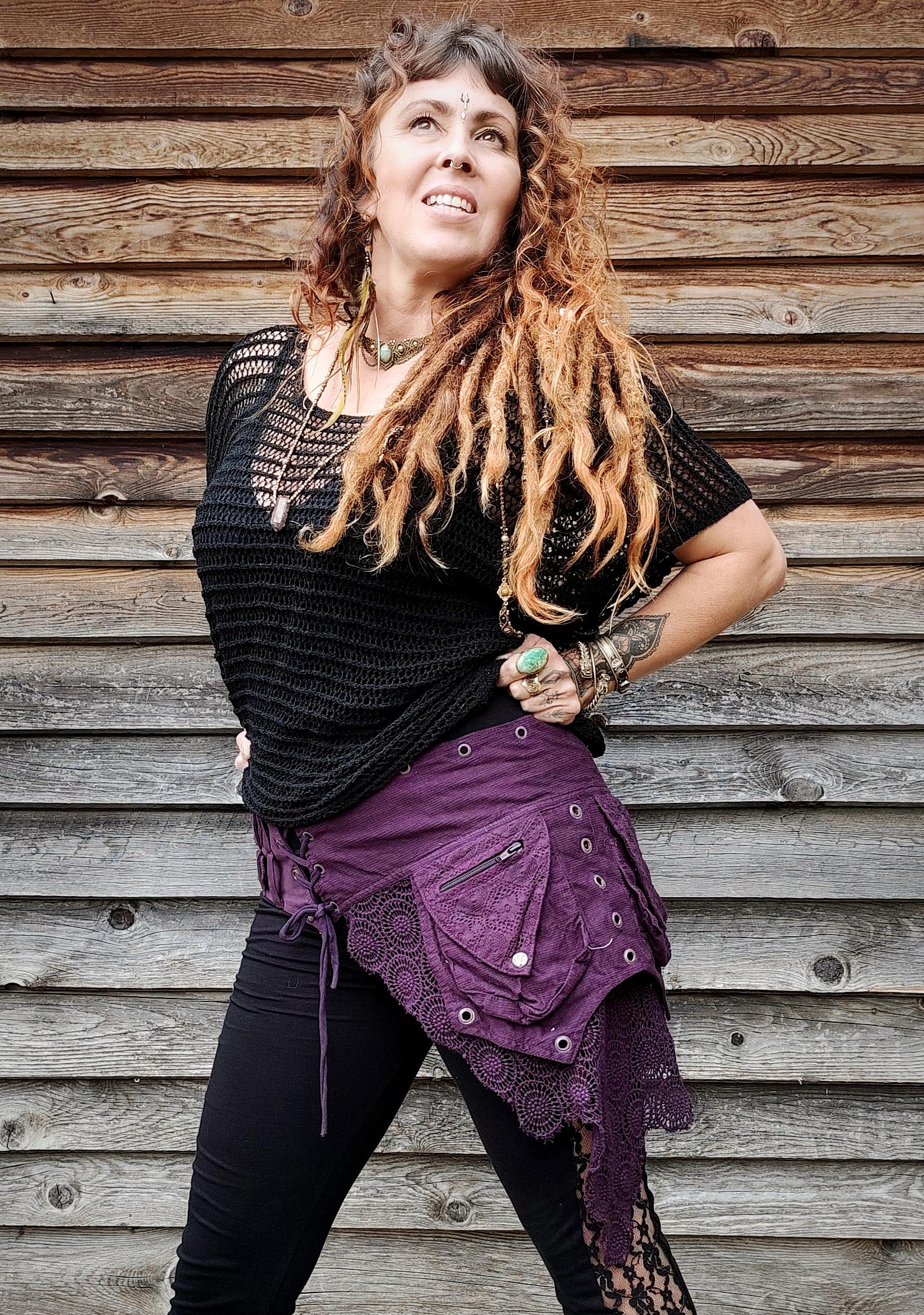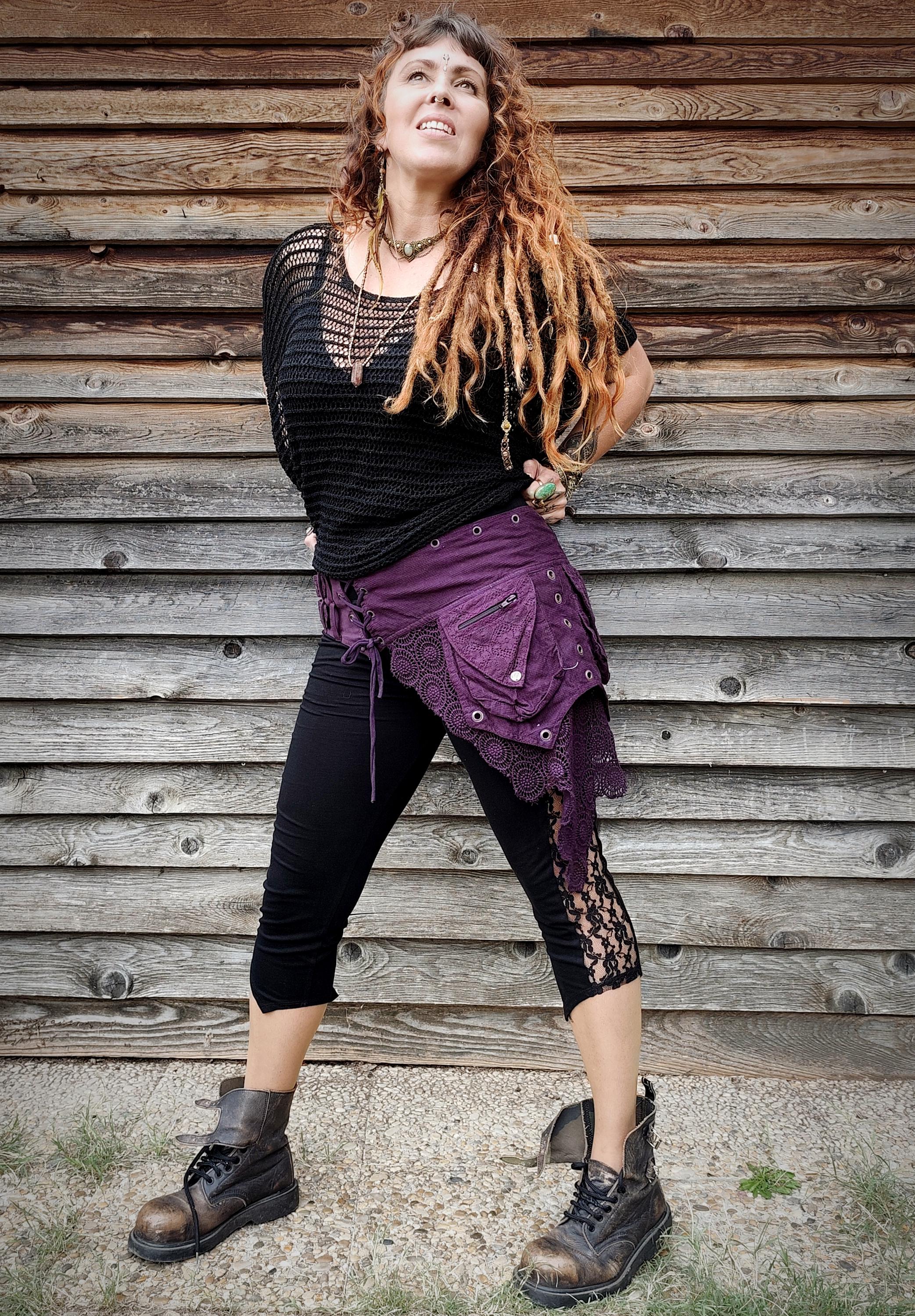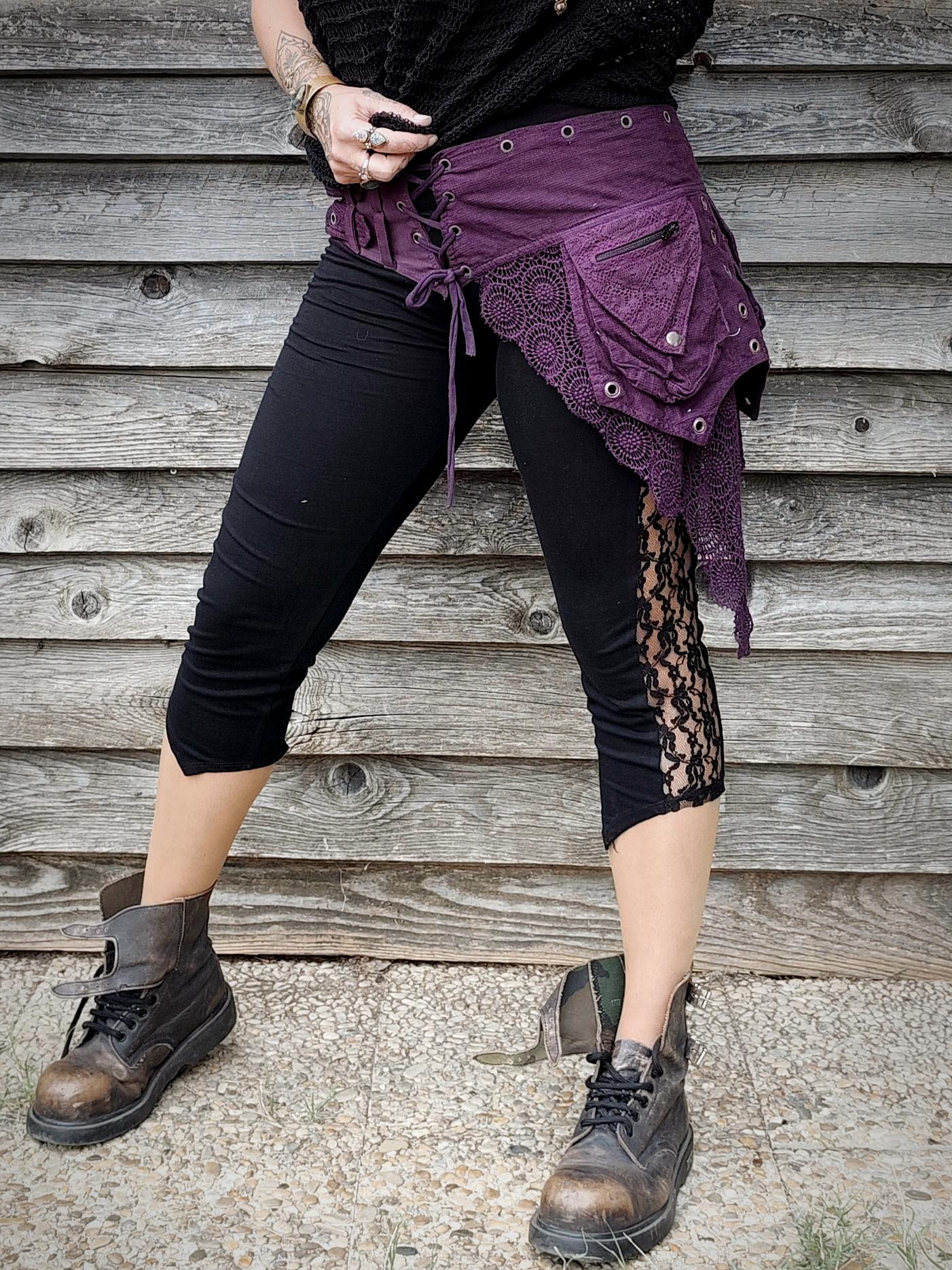 Gypsy bag belt in cotton fabric and lace tip to give the effect of an overskirt.