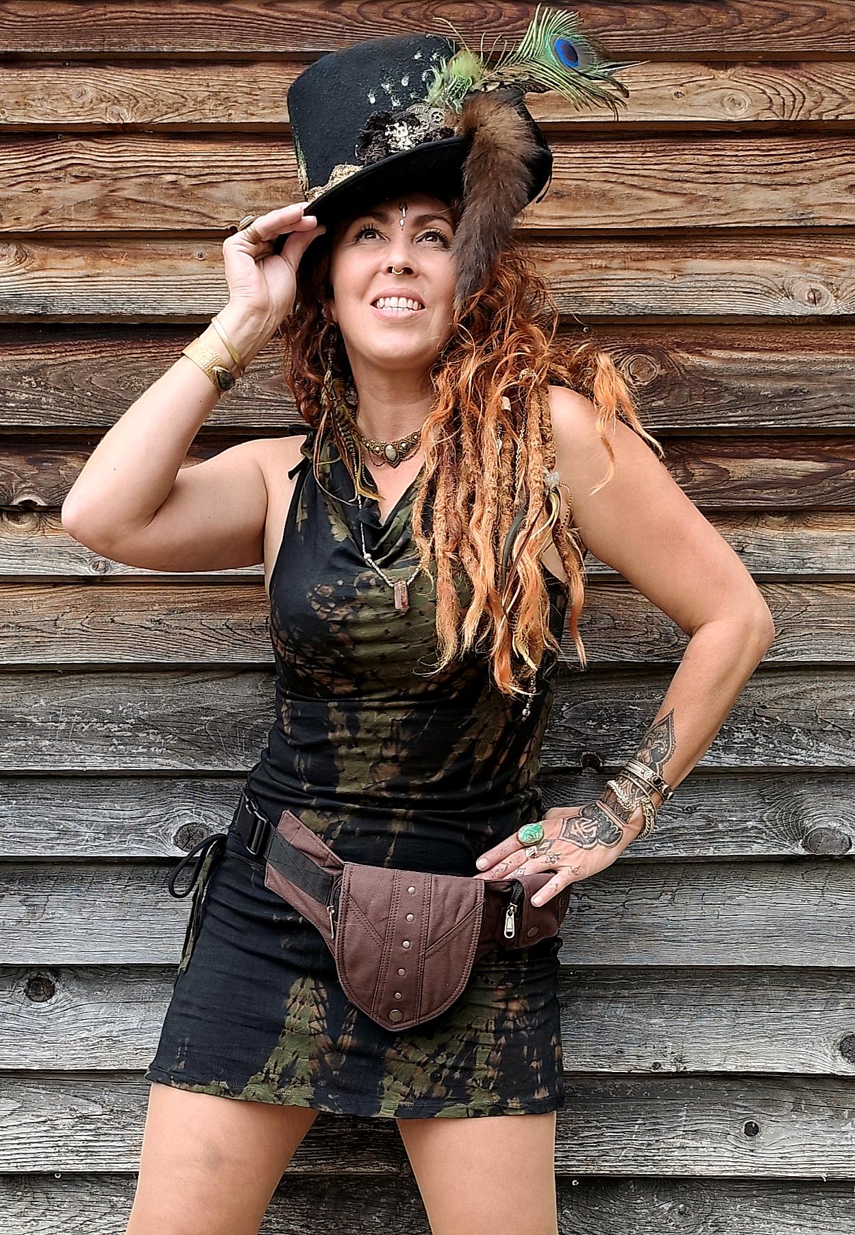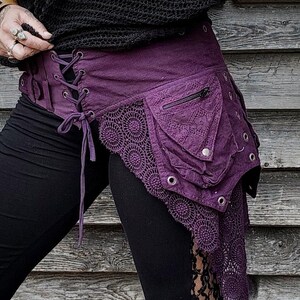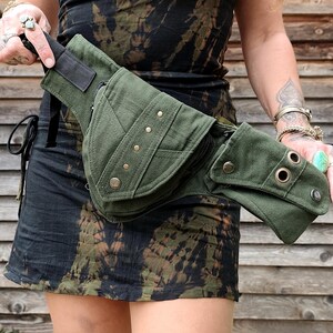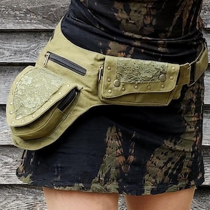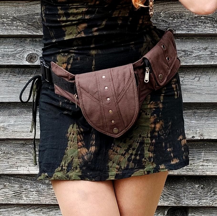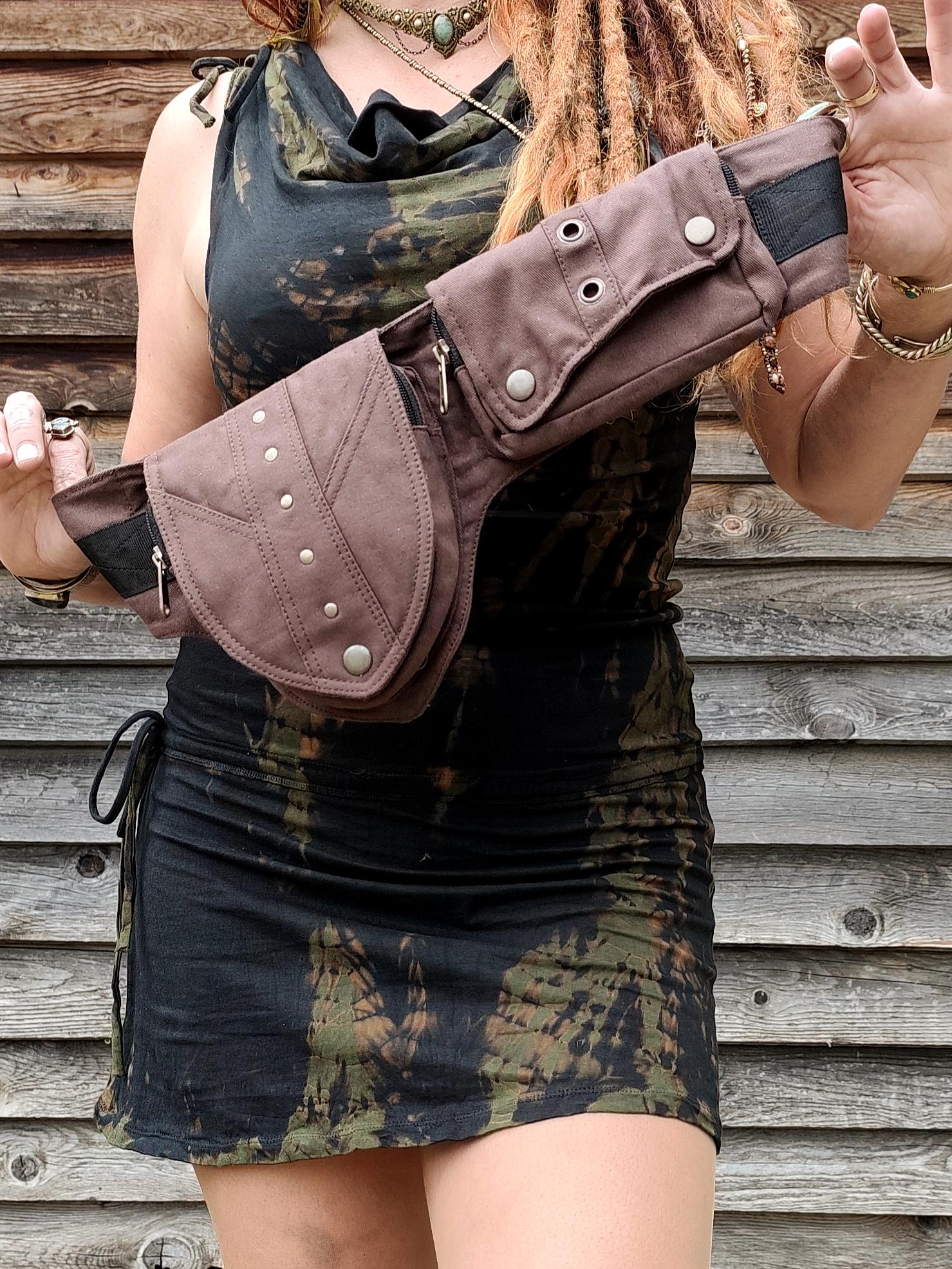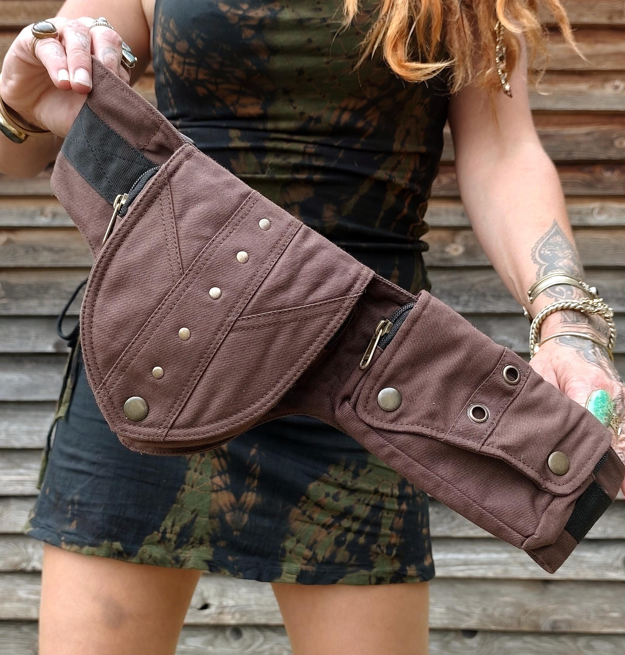 Ceinture sacoche avec plusieurs poches, modèle unisexe en tissus coton, coupe pointue dans l'esprit fantastique, à taille unique réglable. (voir les dimensions ci-dessous).