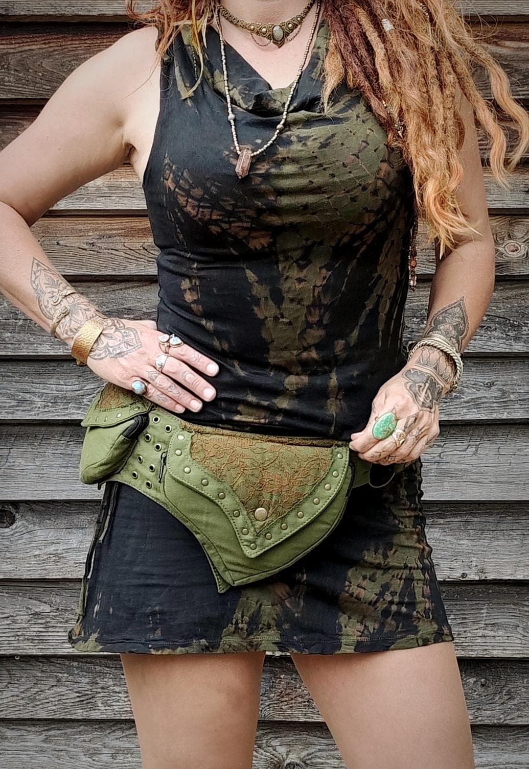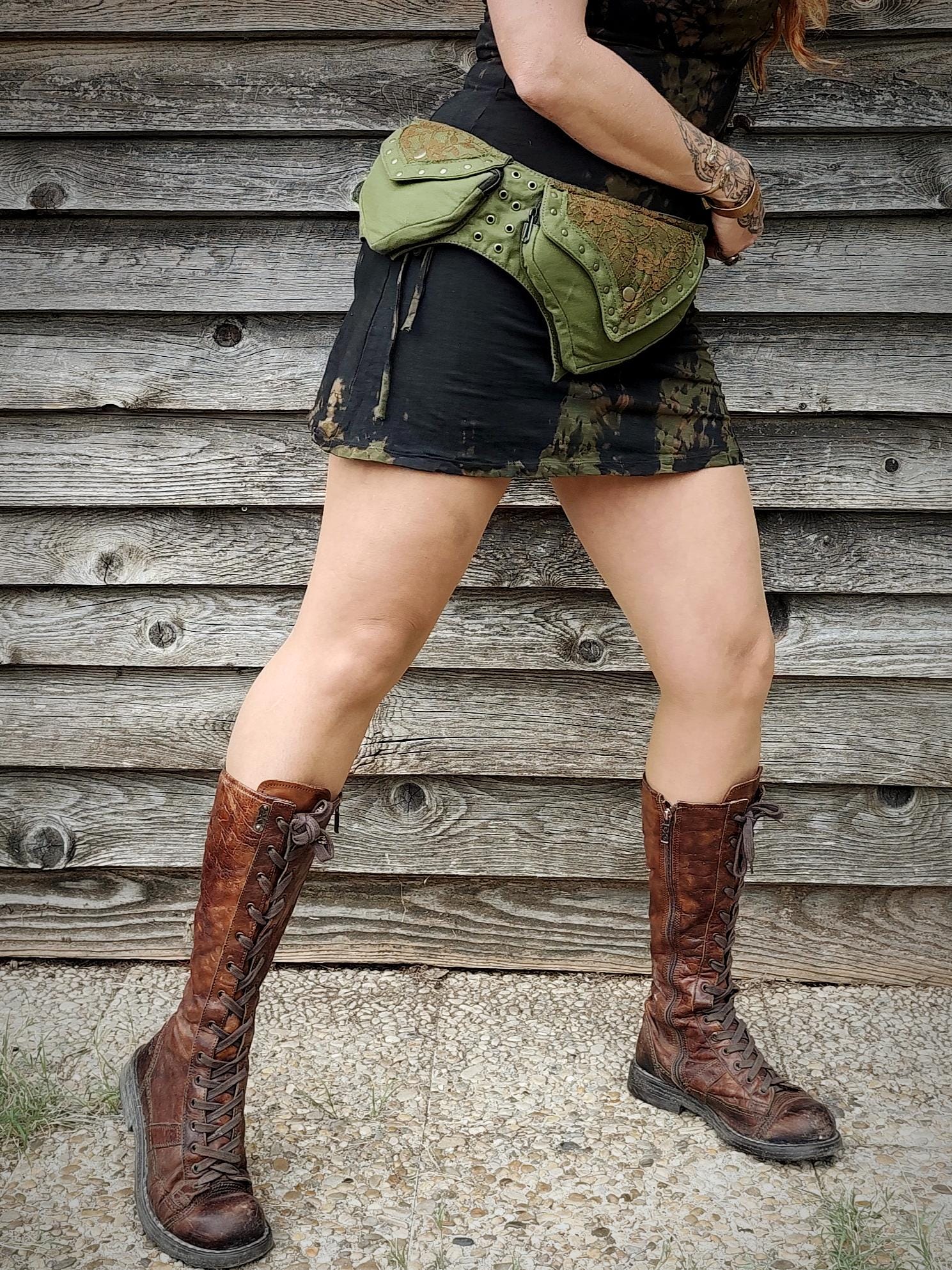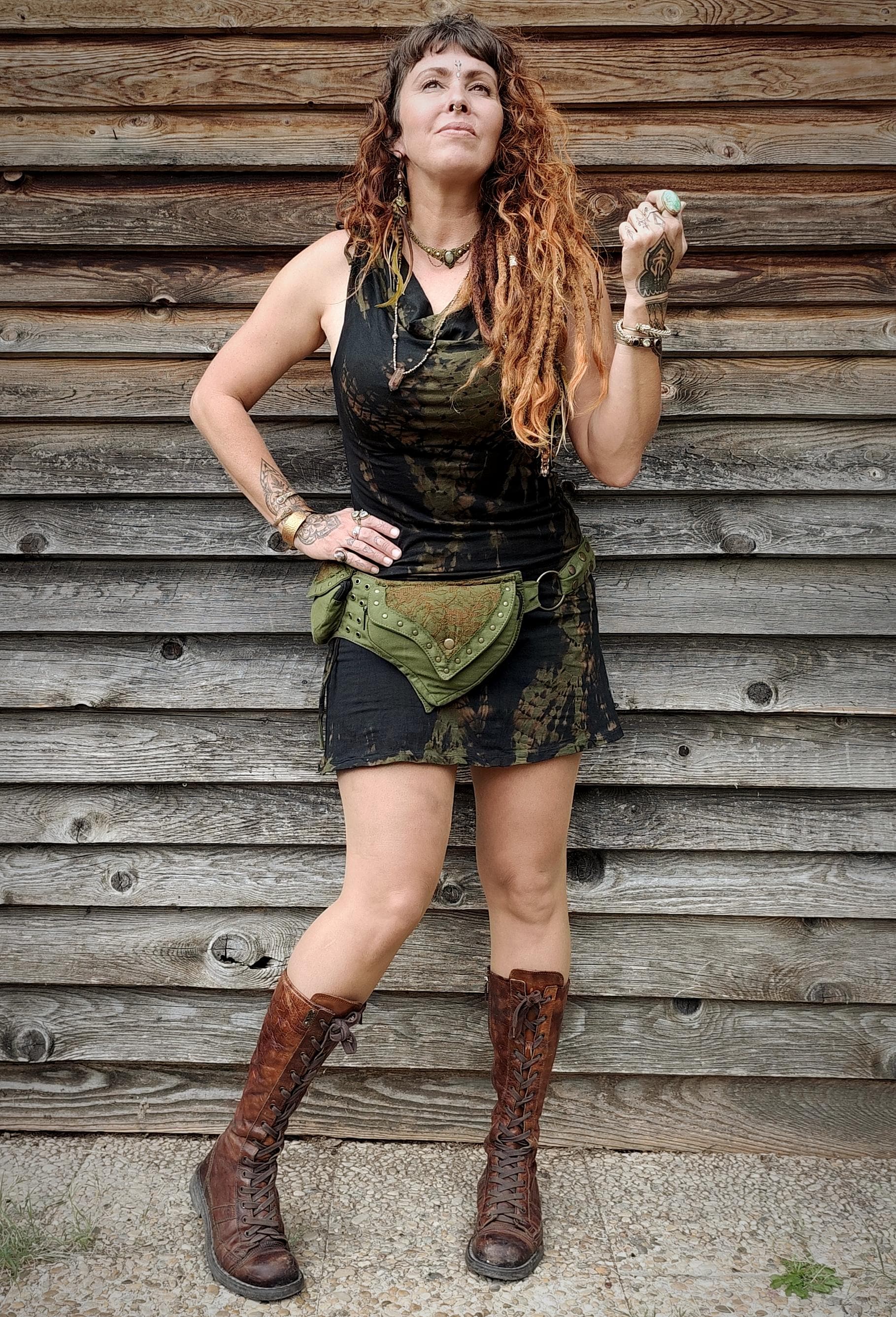 Ceinture sacoche avec plusieurs poches, modèle pour femmes en tissus coton, coupe pointue dans l'esprit féerique fantastique, à taille unique réglable. (voir les dimensions ci-dessous).